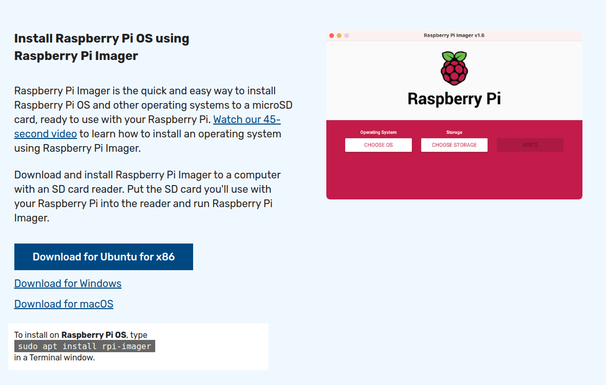download and install the imager for your operating system (Windows, Mac or Linux[ubuntu])