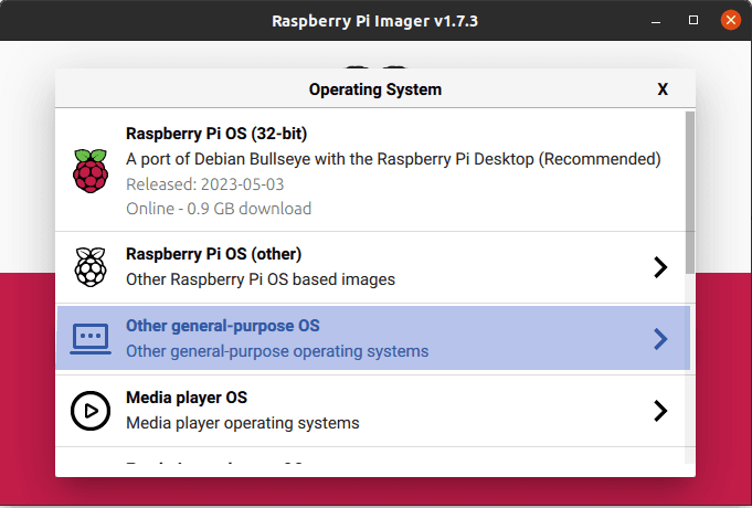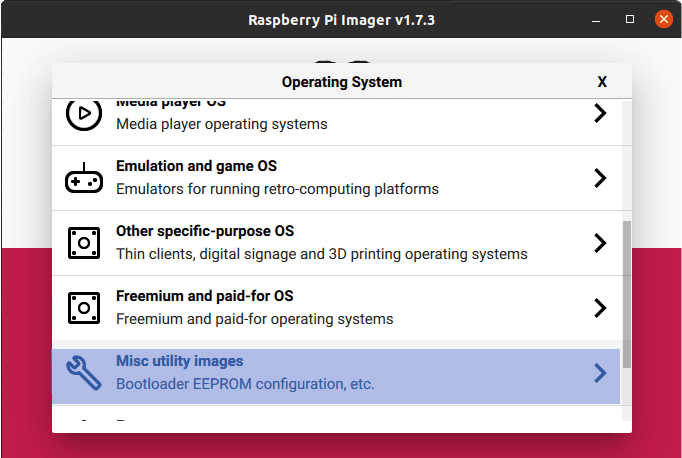Again select the "CHOOSE OS" button (Which now says USB BOOT, you might have to click back a couple times to reach the root menu).