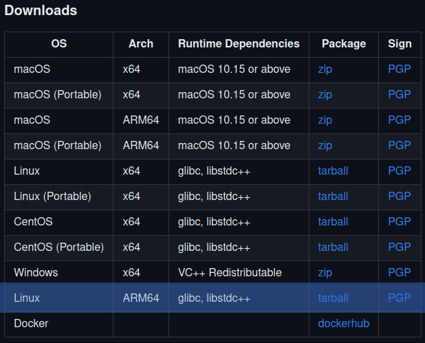 First we can download the latest CKB Binaries for the ARM64 CPU. Open up firefox and go to:
