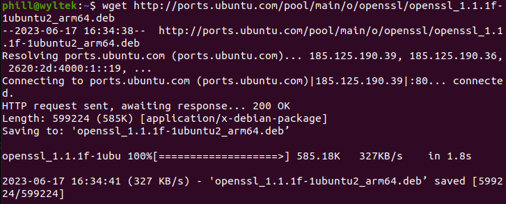 wget http://ports.ubuntu.com/pool/main/o/openssl/openssl\_1.1.1f-1ubuntu2\_arm64.deb